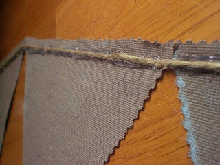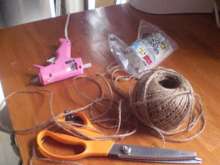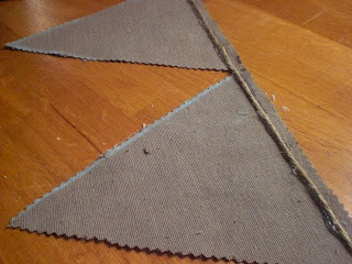 Hot glue string, twine, or ribbon to the back (or front) of your triangles