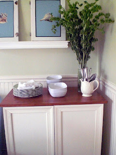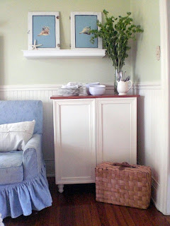 Hey girl, #3 home here :). Your photos are artistic and beautiful! Love all the attention to detail you put into your post and into your home. The stripes on the wall, the checkerboard painted floor, the corks for pulls, the vintage beach touches---absolutely charming! Good luck on the sale of your home!