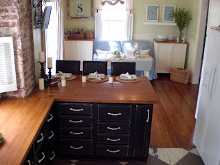 You have great style. Love your attention to detail...cork pulls in the kitchen. I also love those curtains in the room with the blue tv cabinet. Care to share how you made them? Are they dropcloths?