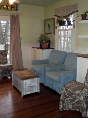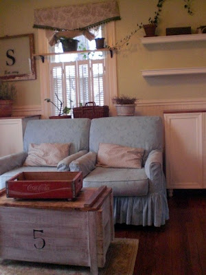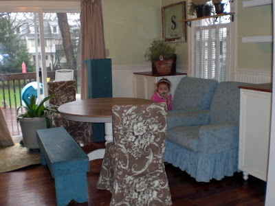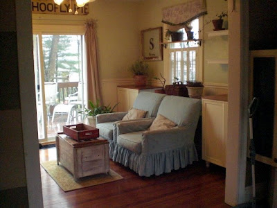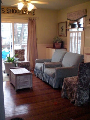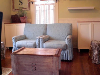 Anyway, they had this great shabby chic, overstuffed love seat/sofa in their kitchen.