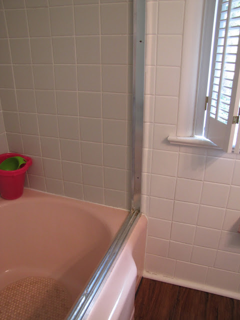 Here's where the white tile ends and the old pink begins.