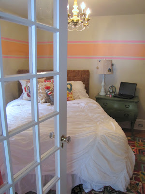 The hanging panel on the terrace door is a ruffly little number from Anthropologie.