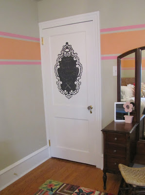 We found a chalkboard decal online and applied it to the back of Lily's door.