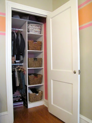 A carpenter installed a column of shelves and 2 hanging bars for Lily.