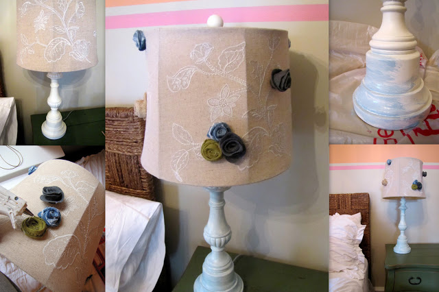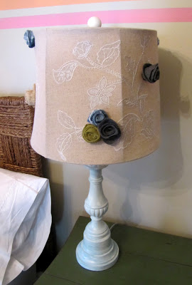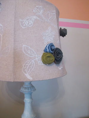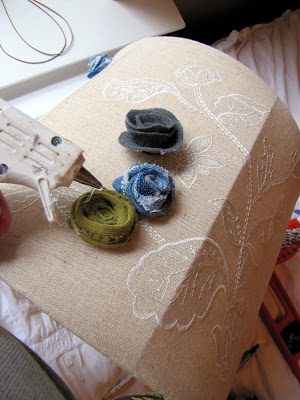 Love the finished look of your lamp! I plan on doing an old shade I have sitting in my garage. I am going to use creamy muslin frayed edge flowers on it - can't wait.