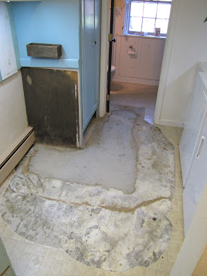 A pipe under our laundry floor was cracked. So few a few weeks, the floor looked like this.