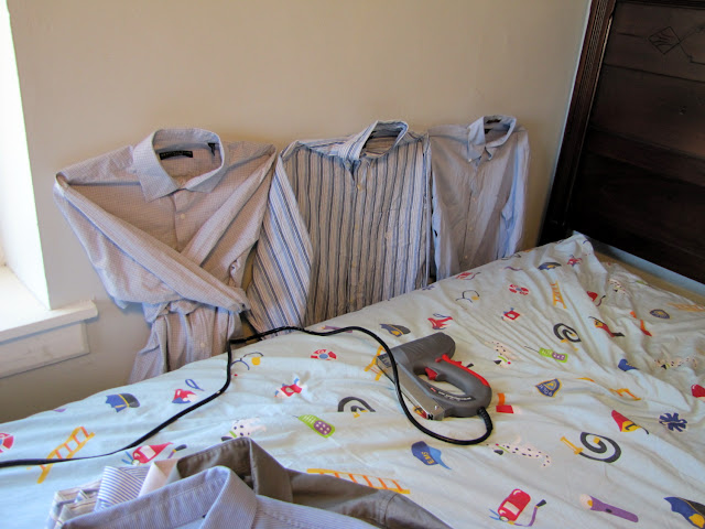 Once all the shirts were in place we tucked the tails into the collar in front of it.