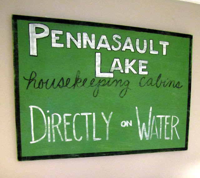 I made the sign after searching "signs" on pinterest for ideas. Pennasault is a lake in Canada were my husband used to go in the summer with his family.