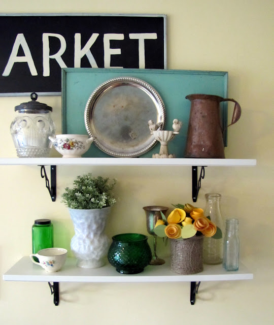 Denise... it looks great! I am always reminding myself to use what I have. glad my shelves inspired and made you smile! I love the market sign you have above your shelf. I have been looking for something to put above the top shelf... some type of advertisement sign or something. I will know it when I see it I guess. have a great day! xo Heather