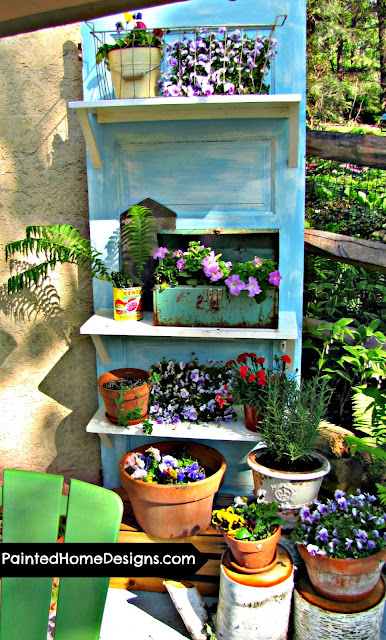 I used a door shelf that used to be in Jonas's room as a baby to hold some plants.