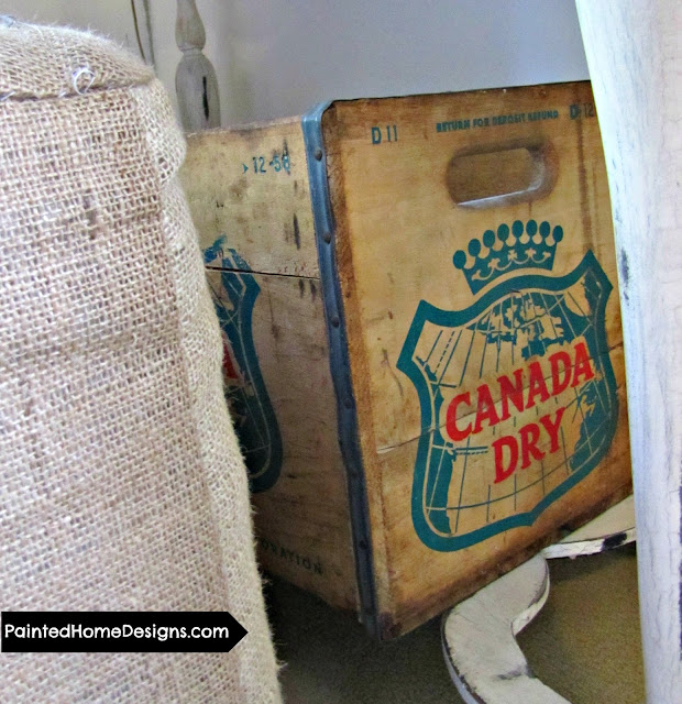 this room has some subtleties in that area. So the lamps, the grain sacks and The crate with the galvanized edging helps compliment it too.