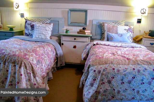 A few months ago I freshened-up the girl's room with some gray paint and some colorful duvets.