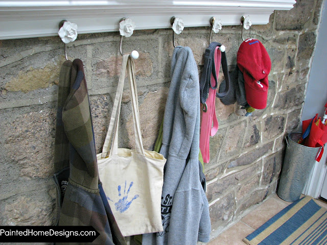 I added some hooks (from Anthropologie) to the bottom of a windowsill.