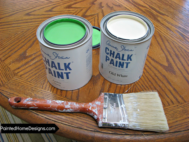 I bought some Annie Sloan Chalk paint in Antibes Green, Old White and Duck Egg Blue (not shown).