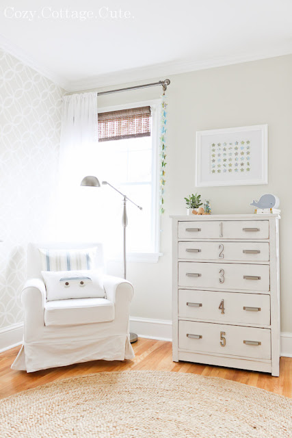I've followed Sarah's blog for a while now, she is so creative, the nursery is adorable! Love what they have done with the exterior too!