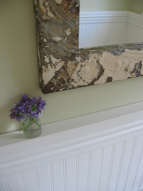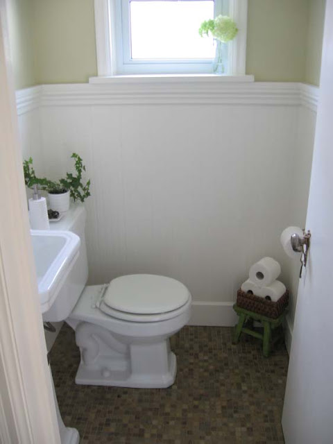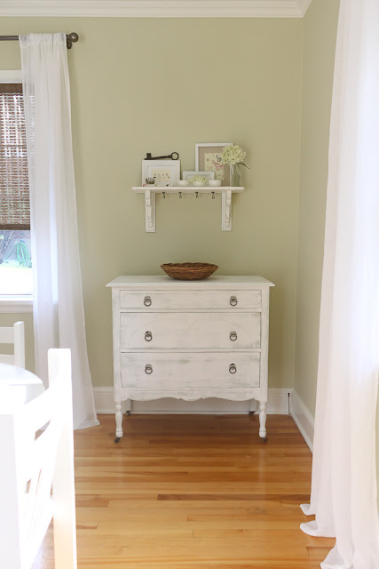 The powder room and breakfast room are also works in progress. They are both off the kitchen and painted the same pale, fresh green. {The green is much lighter than how it appears in the photos.}