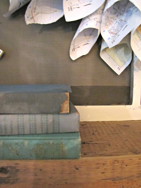 I love this old screen door I found on the side of the road. I cleaned up the wood edges with some cream paint and leaned it against the wall.