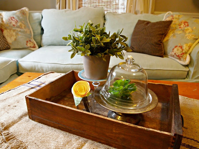 DeleteNo wonder you guys like to hang out there already. Great room and so cozy. Love your collections too. We really want to try a sectional in our family room one of these days. I'm wondering, what colour is the sectional slipcover? It looks almost blue or sage-ish.