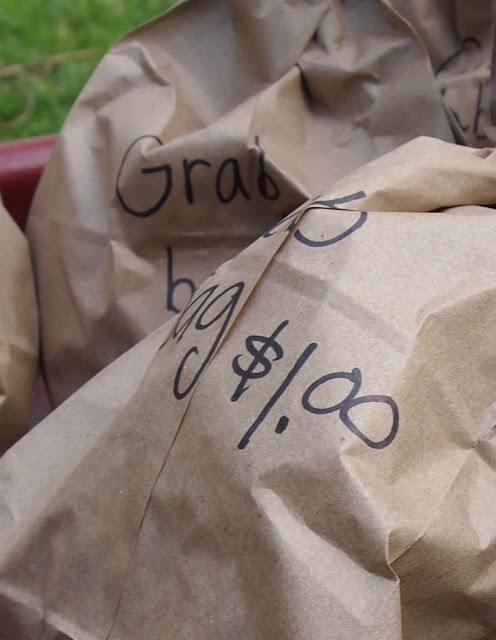8. Make mystery goodie bags (mostly with kids knick knack toys in them). I guarantee every kid that stops at your yard sale will be mesmerized and purchase at least one bag.