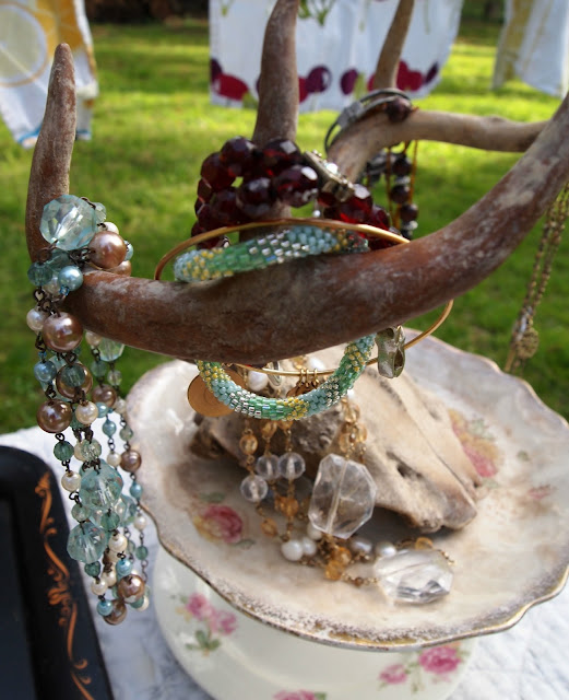 4. Be organized and clever. Untangle your jewelry and hang it on something. A vintage sprinkler, a paper towel holder...