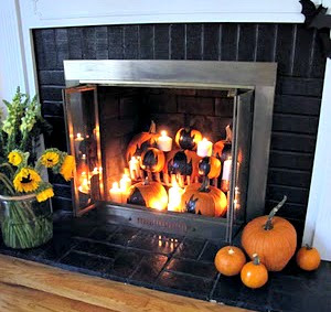 Our first Fall in this home I filled the fireplace with pumpkins painted with flames and candles.
