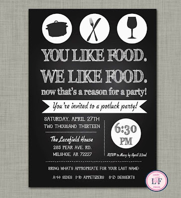 To keep the party stress-free have everyone contribute. These adorable invites say it all.