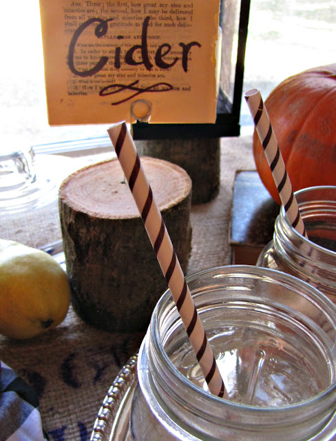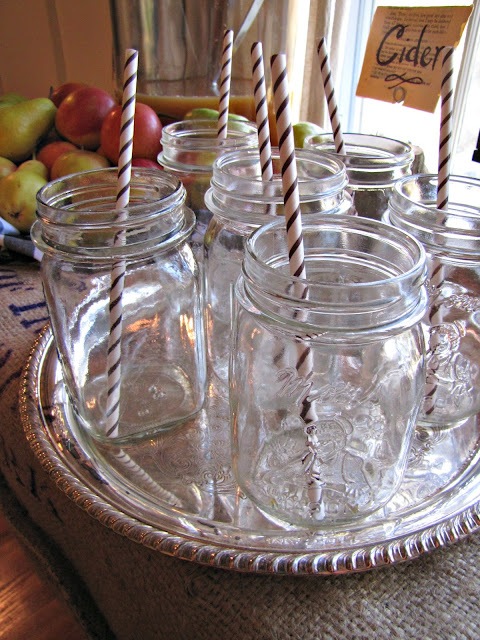 And mason jars with brown and white striped paper straws.
