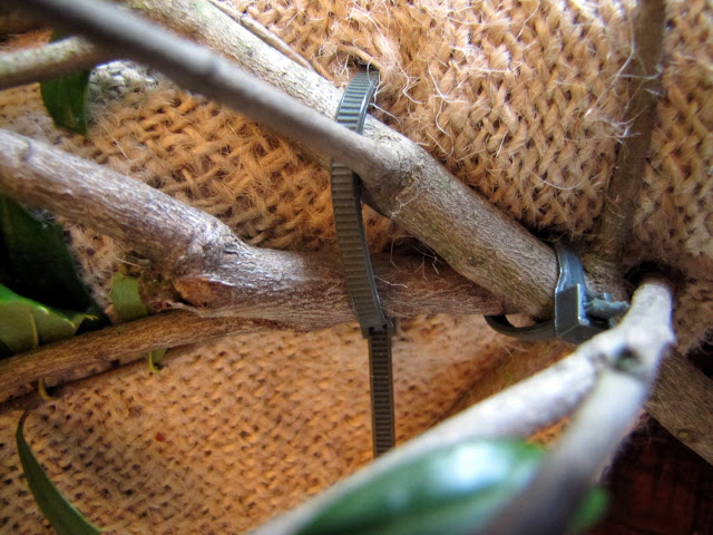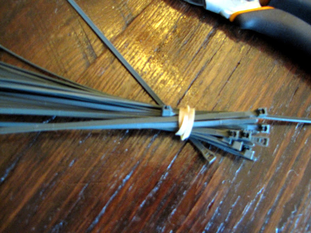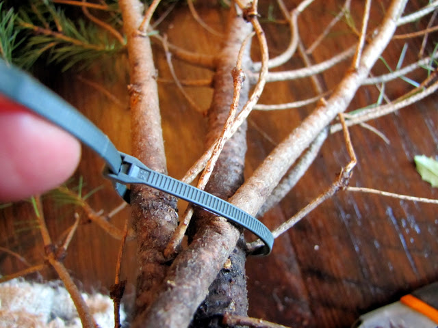 start by attaching the pine cuttings to the holly cuttings with the zip ties.