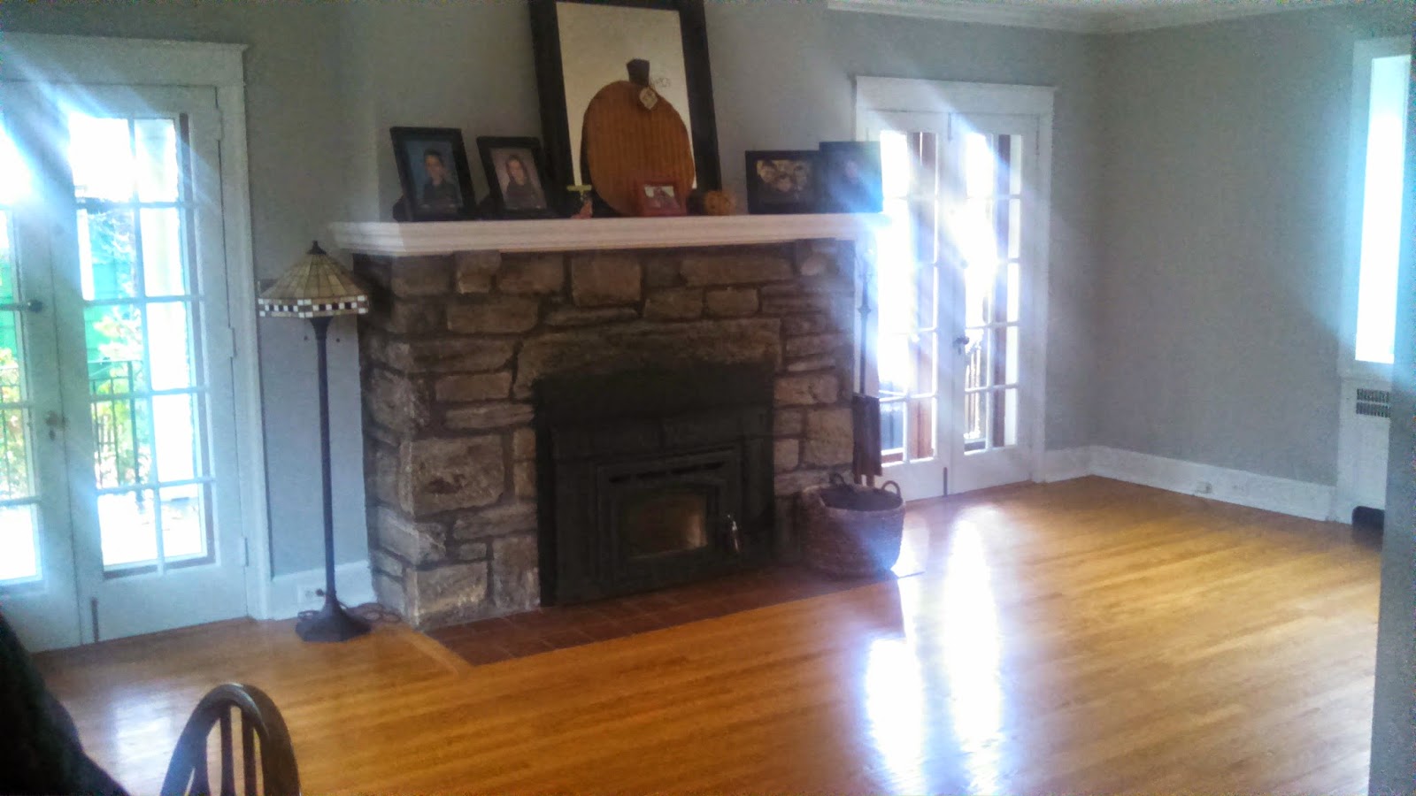 We bought plumbing pipes and drop clothes to hang over the french doors.