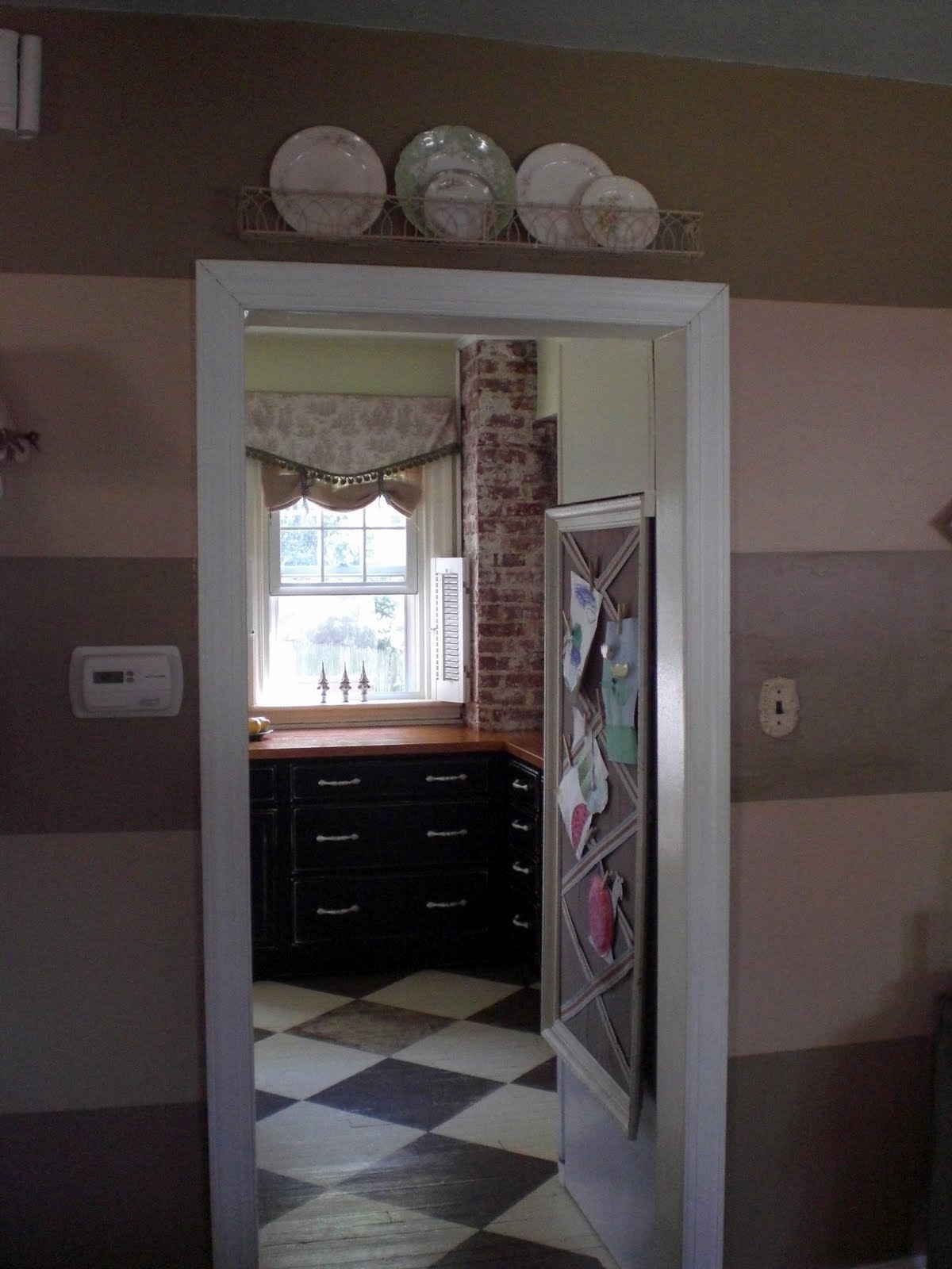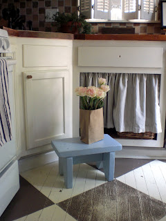 Hey girl, #3 home here :). Your photos are artistic and beautiful! Love all the attention to detail you put into your post and into your home. The stripes on the wall, the checkerboard painted floor, the corks for pulls, the vintage beach touches---absolutely charming! Good luck on the sale of your home!