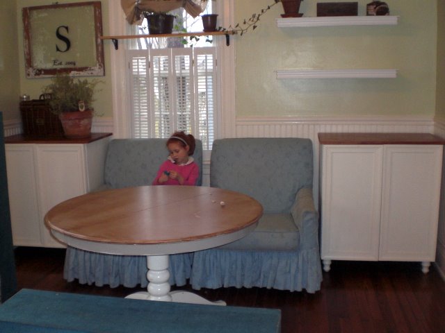 Anyway, they had this great shabby chic, overstuffed love seat/sofa in their kitchen.
