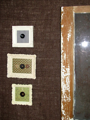 they are dollar store frames, spray painted with scrap book paper and buttons.
