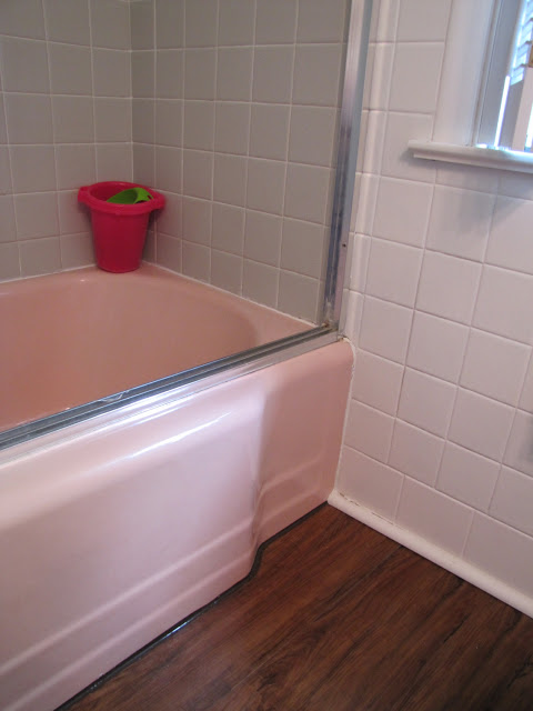My husband and I are closing on a home with a pink bathroom and I love it! I'm going to tone it down, but our pink tub will stay, too. You did a fantastic job! Thanks for the ideas.