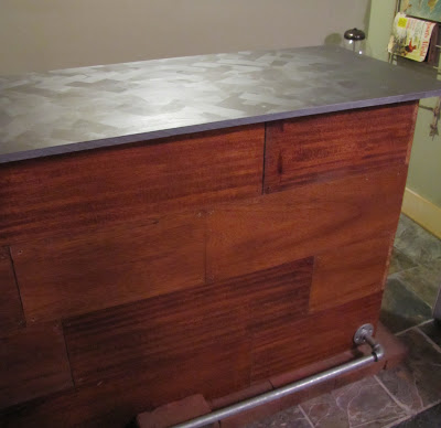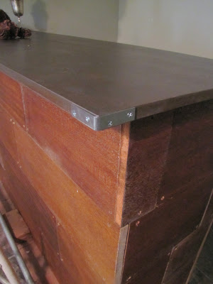 I covered my island bar with metal , but the cornors are sharp . You just gave me a great idea to fix that ! Thanks ! Your bar looks great !