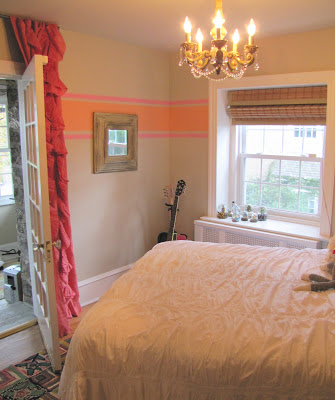 The hanging panel on the terrace door is a ruffly little number from Anthropologie.