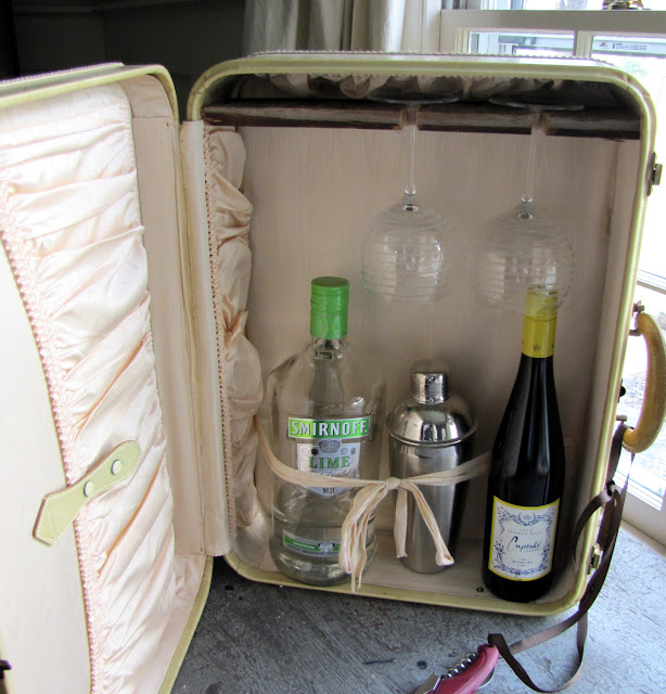 I used a scrap piece of wood from a shipping pallet and notched out 2 spots for the glasses to hang.