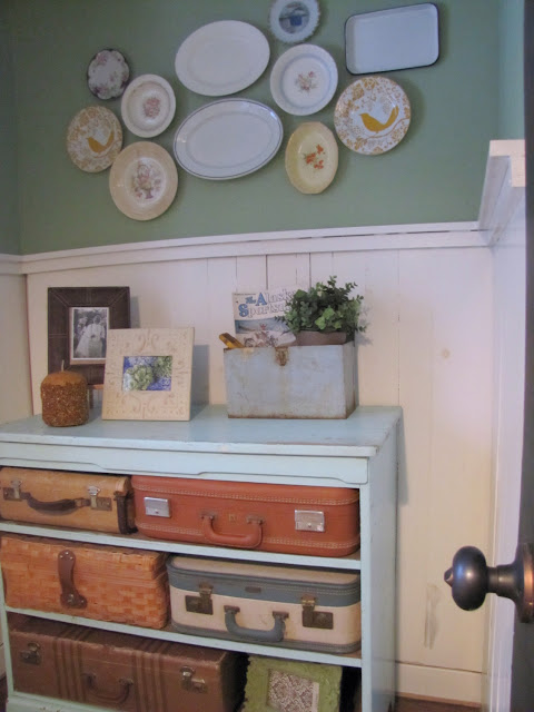 what a fabulous powder room! i wish my bathrooms looked even half as good!! love, love, love those suitcases :)
