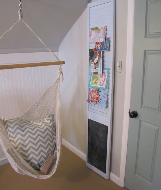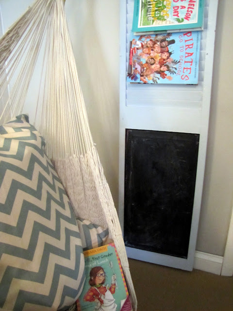 ReplyDeleteAw, I LOVE it!!! Great idea on the door for books and a little chalkboard! And the chevron stripes are so fun!