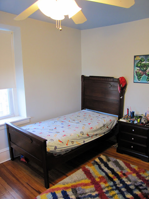 Yesterday my friend and helper Kristie and I added a new wall treatment to her son Harry's room.