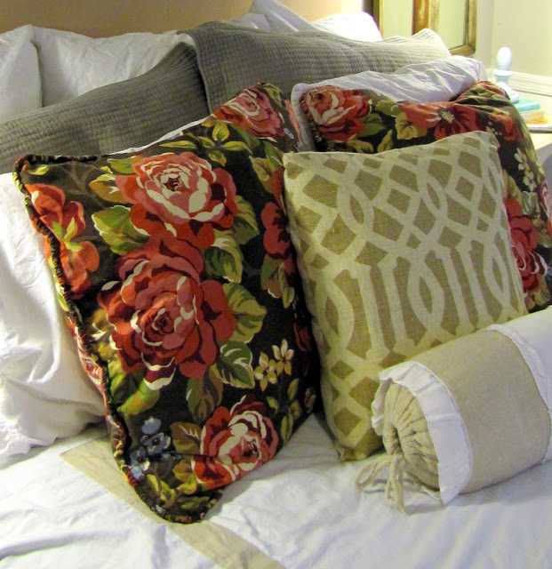 The pillows were taken from the play room sofa. 'Cause they were a little sick of being thrown on the floor.