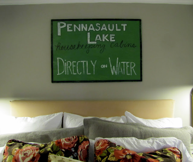 I made the sign after searching "signs" on pinterest for ideas. Pennasault is a lake in Canada were my husband used to go in the summer with his family.