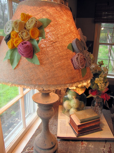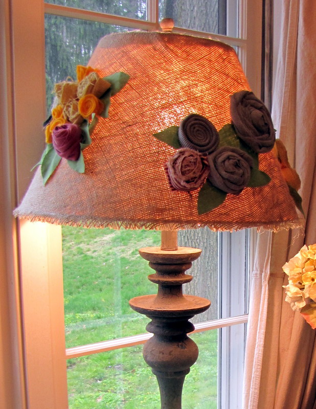 ReplyDeleteI have GOT TO LEARN how to make those little flowers! I like your shade better too! Love the little flowers and the fringe...it has a shabby wonderful feel to it.