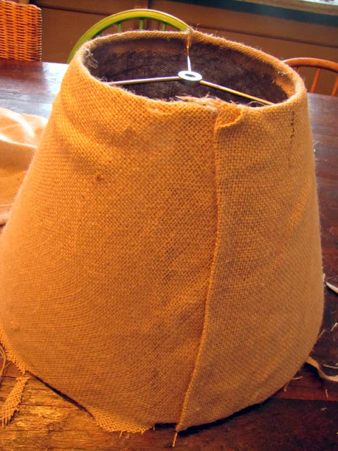 I trimmed the burlap after I glued it to the shade. I wanted it a little messy and crumpled for more texture.