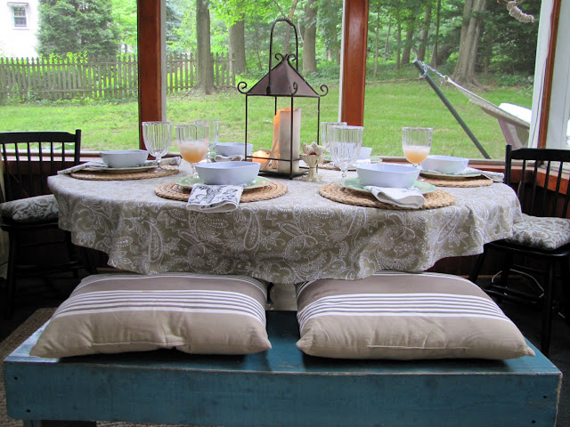Although we use the table a lot, I was dying to create more of an outdoor living room feel.