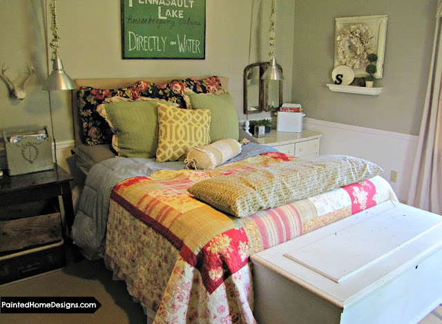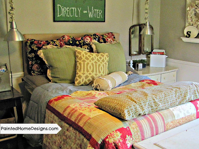 I added some colorful pillows and a quilt with some red in it for some more pop.