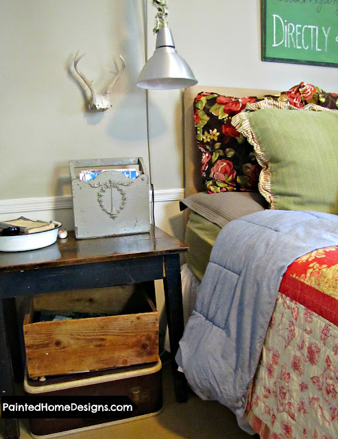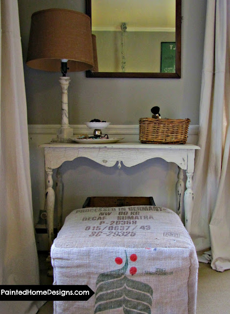this room has some subtleties in that area. So the lamps, the grain sacks and The crate with the galvanized edging helps compliment it too.