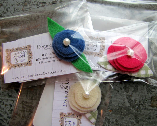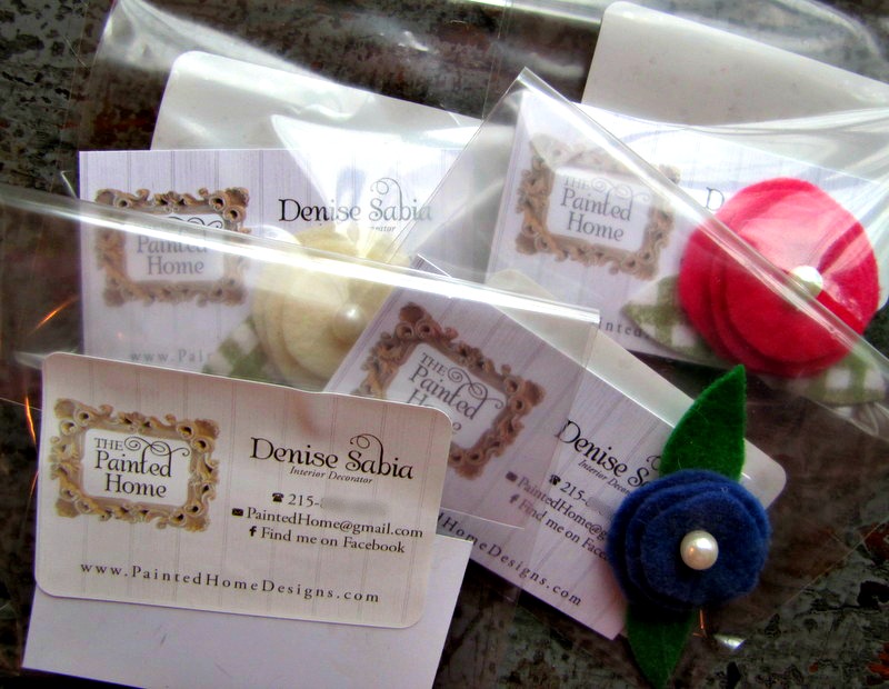 I included a mini felt flower magnet in each bag, along with my business card.