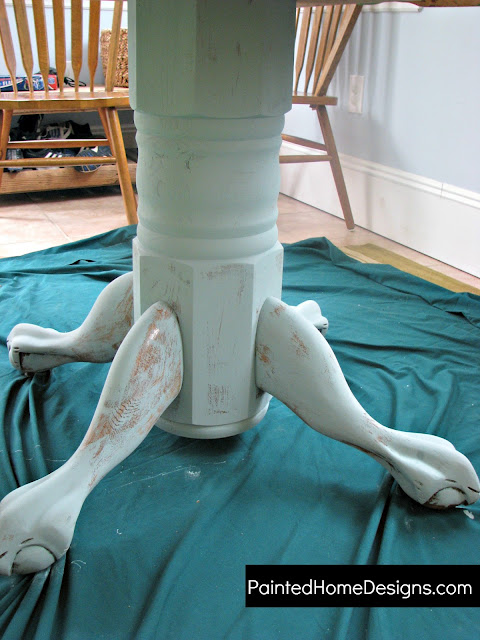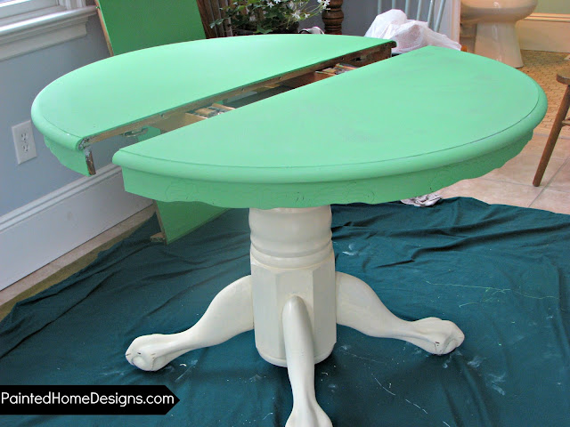 I painted the top of the table Antibes Green and the bottom half the Old White.