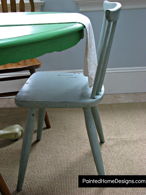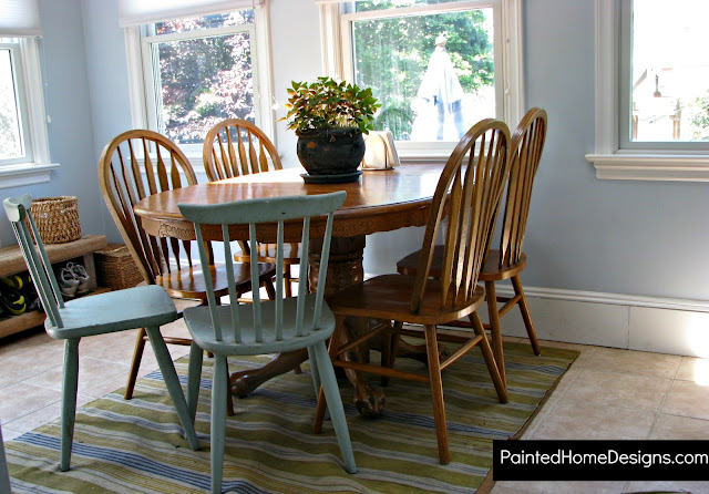 These chippy chairs are the perfect shade of blue and I found them in my neighbors garbage. I added a new rug in a better size for the room.