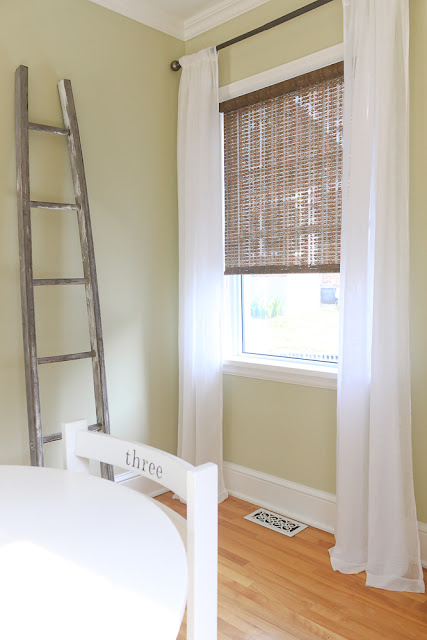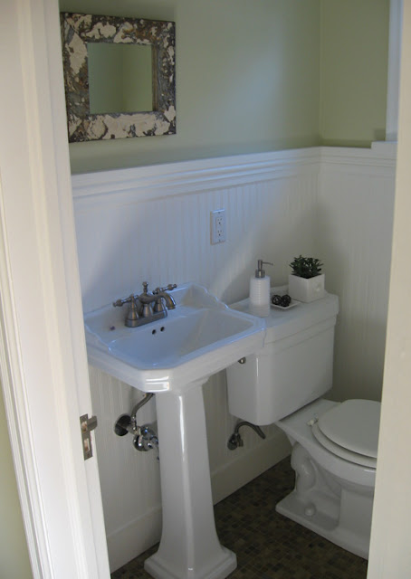The powder room and breakfast room are also works in progress. They are both off the kitchen and painted the same pale, fresh green. {The green is much lighter than how it appears in the photos.}